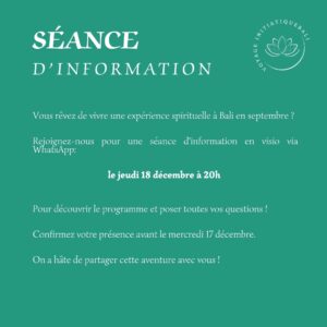 Je vous en avais parlé déjà, il y a quelques temps de ce voyage à Bali que je voulais organiser pour nous